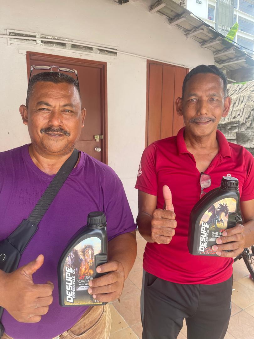 “Saya sanggup datang jauh dari Johor semata-mata untuk mendapatkan Desupe Engine Oil. Dari segi kualiti, memang tiada tandingan – enjin kereta saya terasa lebih lancar, senyap dan responsif selepas menggunakan minyak ini. Proses pembelian juga mudah dan layanan yang diberikan sangat mesra serta profesional. Perjalanan saya berbaloi kerana produk ini benar-benar memenuhi jangkaan saya. Saya pasti akan terus memilih Desupe Engine Oil dan mengesyorkan kepada rakan-rakan yang mementingkan prestasi enjin dan ketahanan jangka panjang. – Mr Ciku@Chef Rudyee from Johor”